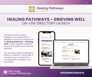 The Nova Scotia Hospice Palliative Care Association (NSHPCA) is pleased to announce the launch of Healing Pathways-Grieving Well™, a new online directory designed to support grief, bereavement, and emotional wellness.